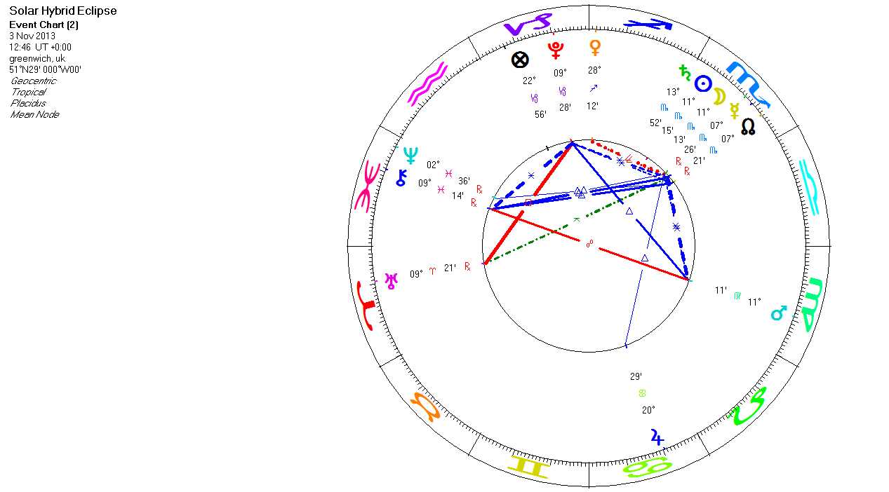 The eclipse is at the 11° Scorpio, where the fixed star Acrux is found. This fixed star is the star that can be found in many charts of those that deal with the mysteries of creation, of understanding what cannot be understood in regular words.